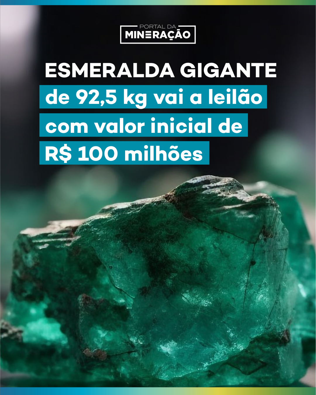 Uma esmeralda bruta de 92,5 quilos, descoberta na região da Serra da Carnaíba, no semiárido baiano, será leiloada no dia 8 de agosto com lance inicial de R$ 100 milhões. A pedra foi adquirida em agosto de 2024 por um empresário do setor de metalurgia do Rio de Janeiro, que é colecionador de ativos minerais. Agora, ele decidiu colocá-la à venda.